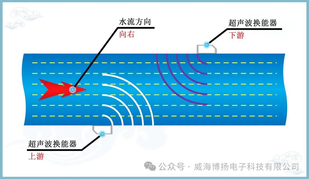 1. 發(fā)射與接收:該設(shè)備通過在流體的上游和下游位置部署一對或多對超聲波換能器,它們就像小喇叭一樣,上下游換能器交替發(fā)射和接受超聲波信號:上游換能器發(fā)出超聲波,下游換能器接收超聲波;下游換能器發(fā)出超聲波,上游換能器接收超聲波。