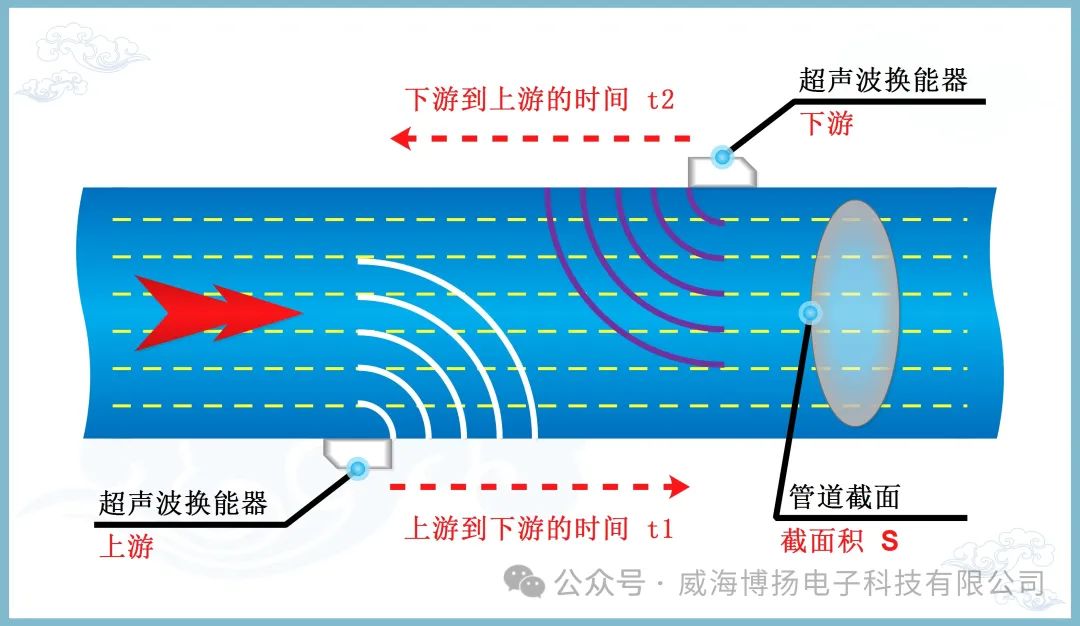 2. 傳播時間差:當(dāng)流體處于靜止?fàn)顟B(tài)時,超聲波傳播的時間是相同的。當(dāng)流體開始流動時,由于流速的影響,超聲波的傳播路徑和時間會發(fā)生變化。通過比較上下游換能器分別發(fā)出超聲波信號的傳播時間差,我們就能計算出流體的流速。
