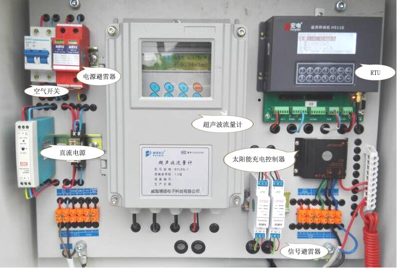 山東省水資源建設(shè)項(xiàng)目用水資源監(jiān)控終端 - 控制箱內(nèi)雙供電超聲波流量計(jì)配置圖